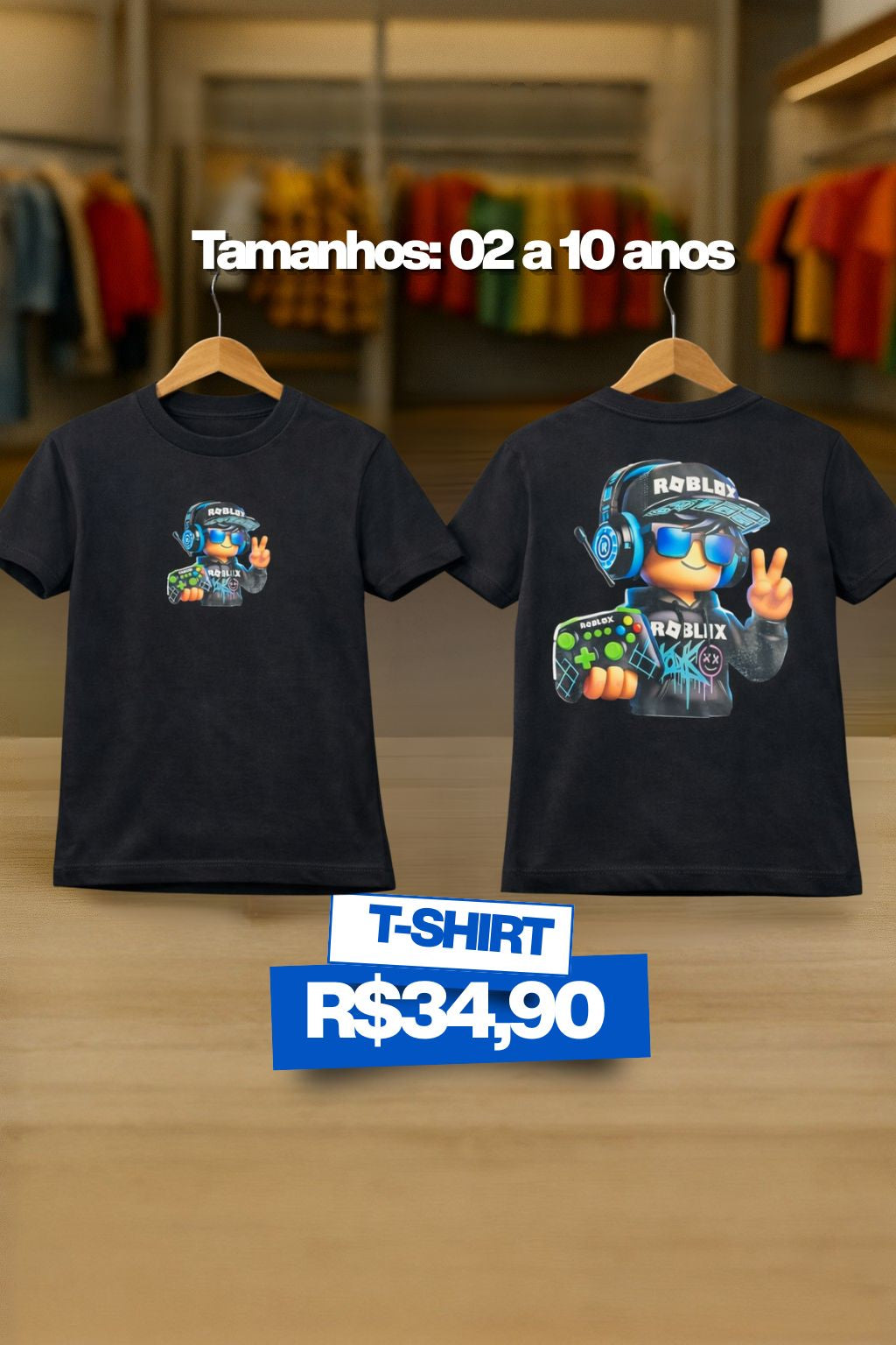 Nossa camisa infantil é produzida em cotton premium, um tecido leve, macio e respirável, pensado para acompanhar as crianças em todos os momentos — da escola às brincadeiras.